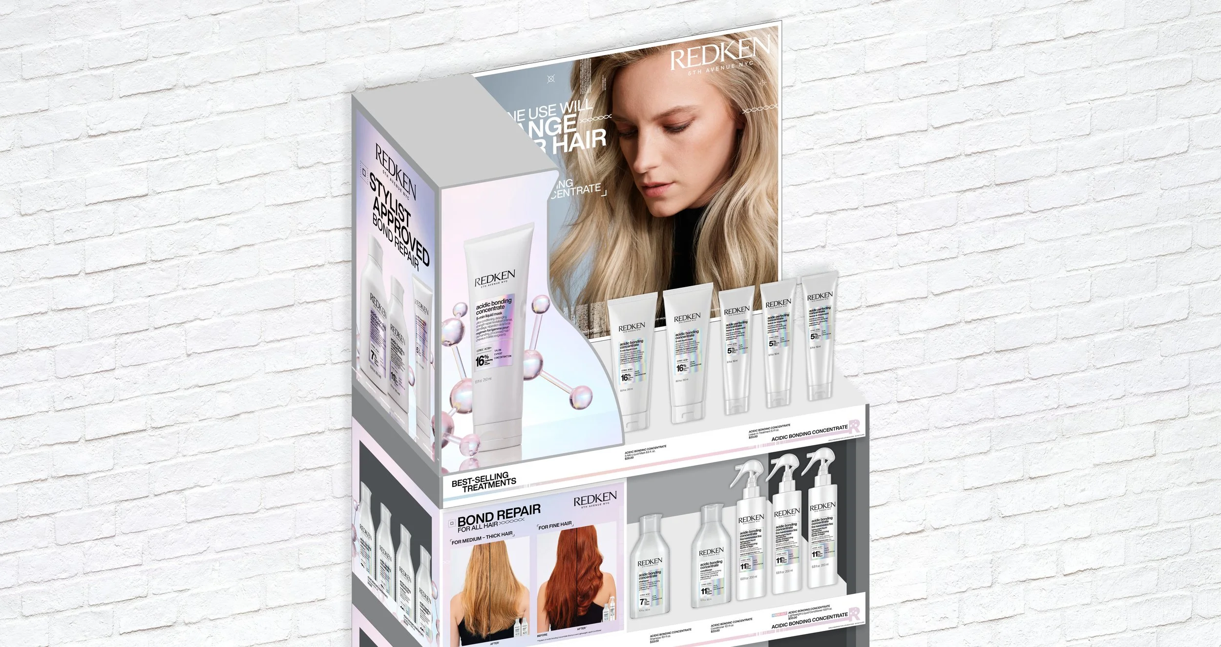 PUREOLOGY HOLIDAY REDKEN COLOR WALL RENOVATION REDKEN MERCHANDISING ENDCAP REDKEN TRIAL KIT POW! WOW! REBRAND CONCEPT